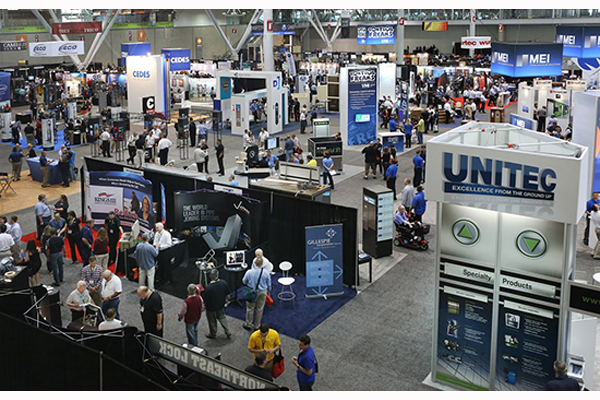 上届美国电梯展览会NAEC共有来自32个国家和地区的458家参展商前来展示创新产品以及深层技术开发和最新趋势。为期四天的展会吸引了来自36个国家和地区的25000名行业观众前来参观交流。参展面积达34000平方米。展会取得了巨大的成功,无论是展商数量,观众数据以及展商及观众对展会的满意程度都达到举办以来的新高度。